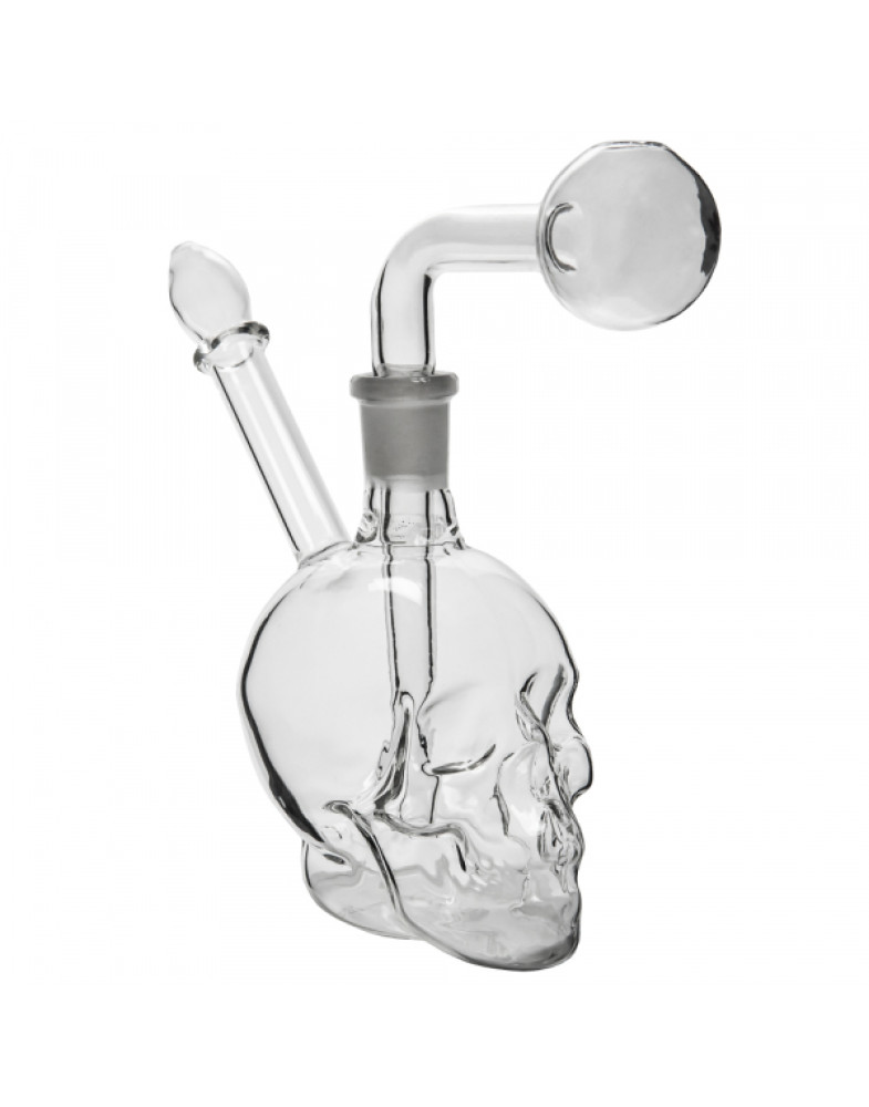Оригінальна модель для кристалів із корпусом у формі реалістичного черепа. Завдяки прозорому боросилікатному склу добре видно внутрішню конструкцію та рух диму, що додає аксесуару виразного вигляду під час використання.