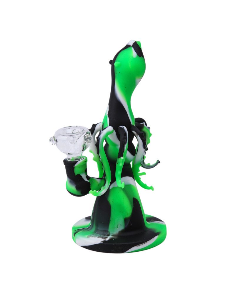 Бонг «Восьминіг» — оригінальна модель для куріння з водною фільтрацією, яка поєднує практичність і незвичну форму. Конструкція дозволяє ефективно пропускати дим через воду, що робить тягу більш м’якою та комфортною.