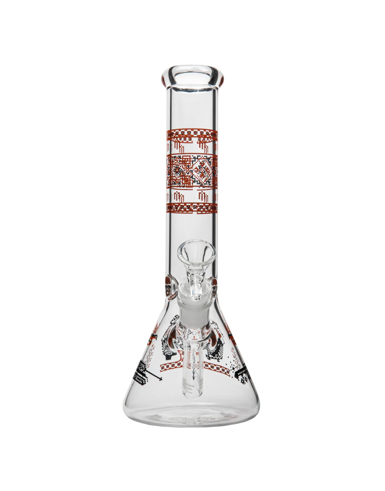Скляний бонг із класичною формою та стильним декоративним принтом, який поєднує практичність і привабливий дизайн. Завдяки висоті 25 см модель забезпечує хороший баланс між компактністю та ефективною водною фільтрацією. Дим проходить через воду, охолоджується та стає м’якшим під час затяжки, що робить процес куріння більш комфортним.