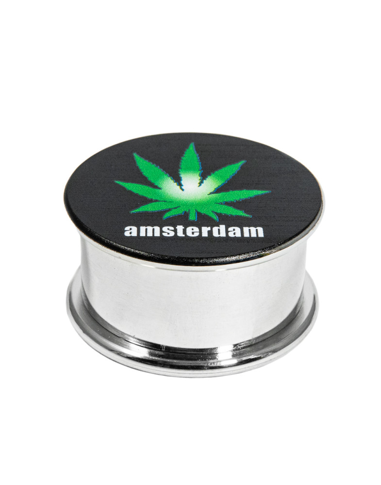 Компактний металевий гріндер із лаконічним дизайном і впізнаваним принтом — практичний варіант для щоденного використання. Завдяки висоті 2.5 см і діаметру 4.5 см він має зручний формат, легко поміщається в кишені або невеликій сумці та завжди залишається під рукою.