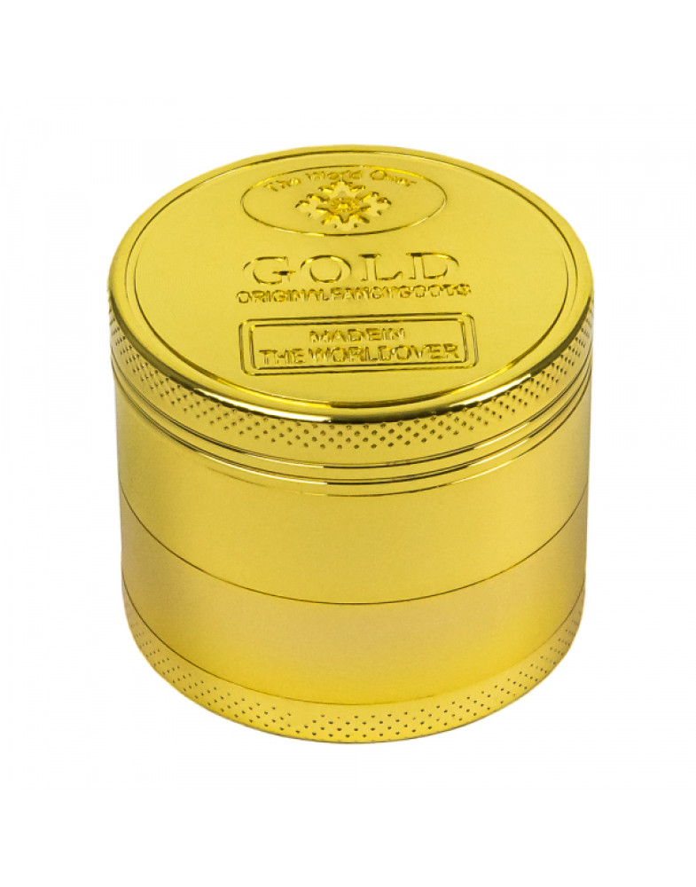 Металевий гріндер у золотому кольорі, який виглядає стильно та одразу привертає увагу своїм дизайном. Завдяки міцному корпусу він добре підходить для регулярного використання та зберігає свій вигляд навіть при частому використанні.