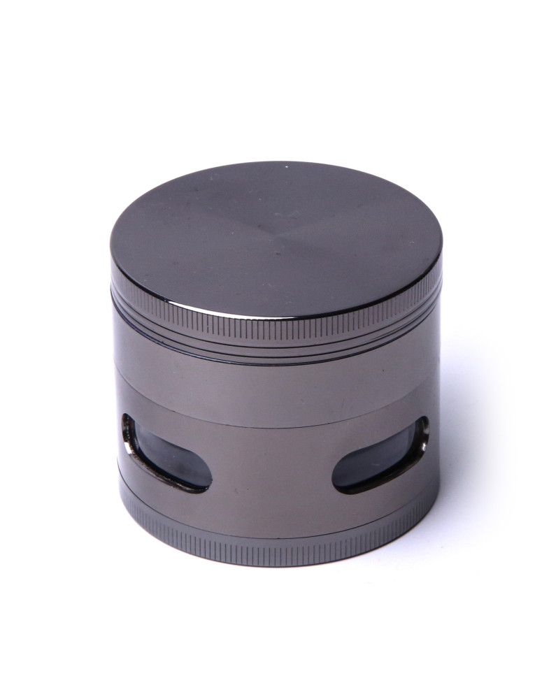 Корпус виконаний із металу, що гарантує міцність і довгий термін служби. Бічні прорізи дозволяють частково контролювати вміст усередині, не відкриваючи гріндер, а продумана конструкція забезпечує плавну роботу та рівномірне подрібнення.