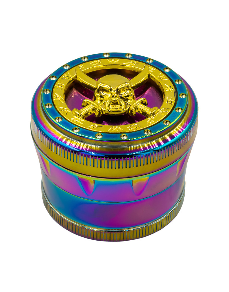 Металевий гріндер із виразним дизайнерським верхом і масивною конструкцією — варіант для тих, хто цінує не лише функціональність, а й візуальний ефект. Завдяки висоті 5 см і діаметру 6.5 см він зручно лежить у руці та підходить для регулярного використання.