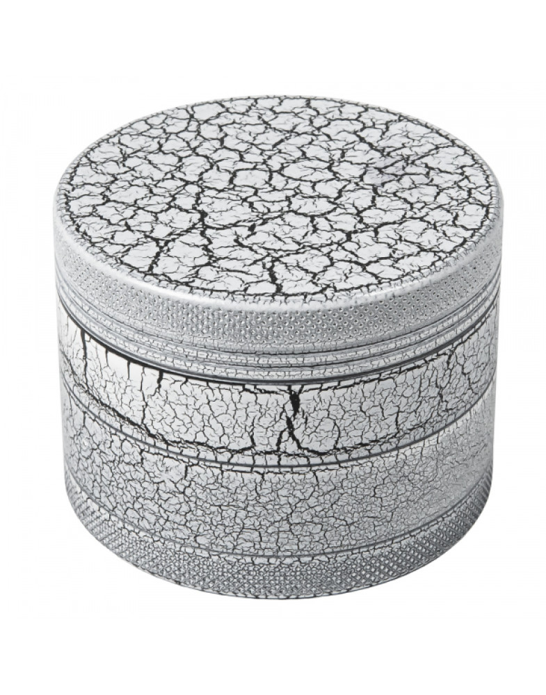 Корпус выполнен из металла, что обеспечивает прочность и долговечность. Поверхность гриндера имеет необычный рисунок с эффектом треснувшей текстуры, благодаря чему он выглядит стильно и выделяется среди других моделей. Такой гриндер сочетает практичность и оригинальный внешний вид.