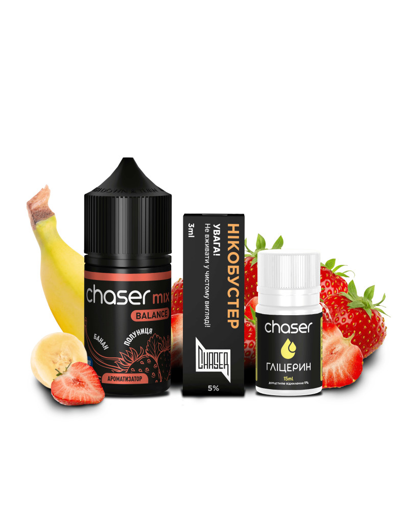 Набор Chaser Mix Банан Клубника — аппетитное сочетание сладкого спелого банана и сочной клубники. Мягкая банановая основа придаёт вкусу кремовость и глубину, а яркая клубника добавляет свежий ягодный акцент с лёгкой кислинкой. Композиция раскрывается гармонично, оставляя приятное сладкое послевкусие без излишней приторности.