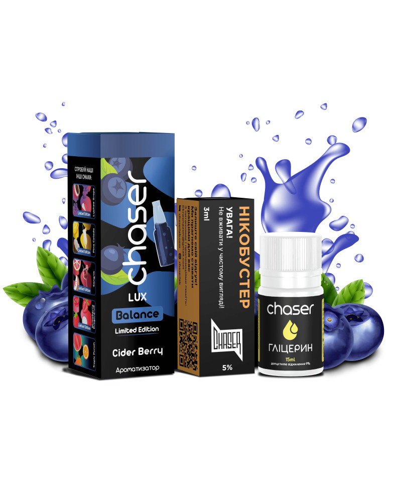 Набір Chaser Lux Cider Berry — оригінальне поєднання ягідної насиченості та освіжаючих нот сидру. У смаку гармонійно розкриваються соковиті ягоди з легкою кислинкою та характерною свіжістю яблучного сидру, що створює яскравий, багатогранний аромат. Легкий прохолодний акцент додає свіжості, а післясмак залишається чистим і приємно фруктовим.