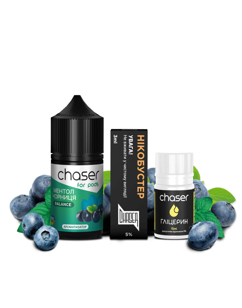 Набір Chaser Ментол Чорниця 30 мл — це насичене поєднання солодкої стиглої чорниці та освіжаючої ментолової прохолоди. Ягідний смак розкривається глибоко й соковито, а легкий холодок додає свіжості та балансу. Післясмак чистий, з виразною лісовою нотою та приємною прохолодою.