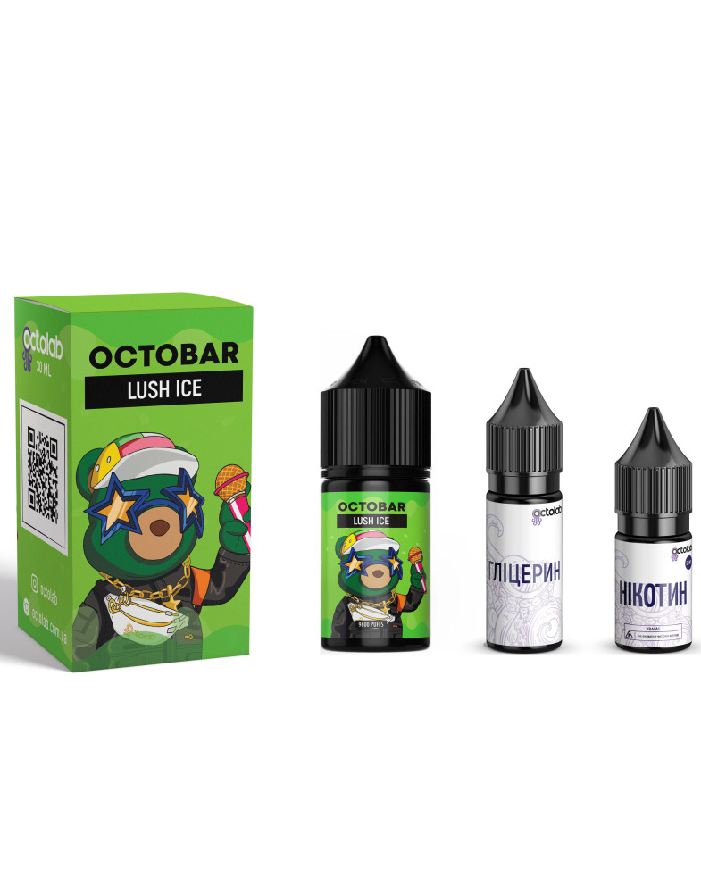 Для розкриття повного смаку використовуйте Octobar Lush Ice в пристроях з низькою потужністю. Це допоможе зберегти насиченість смаку й уникнути гіркоти. Всі інгредієнти у флаконі вже правильно збалансовані. Просто змішайте компоненти, ретельно струсіть флакон і насолоджуйтеся чудовим смаком.