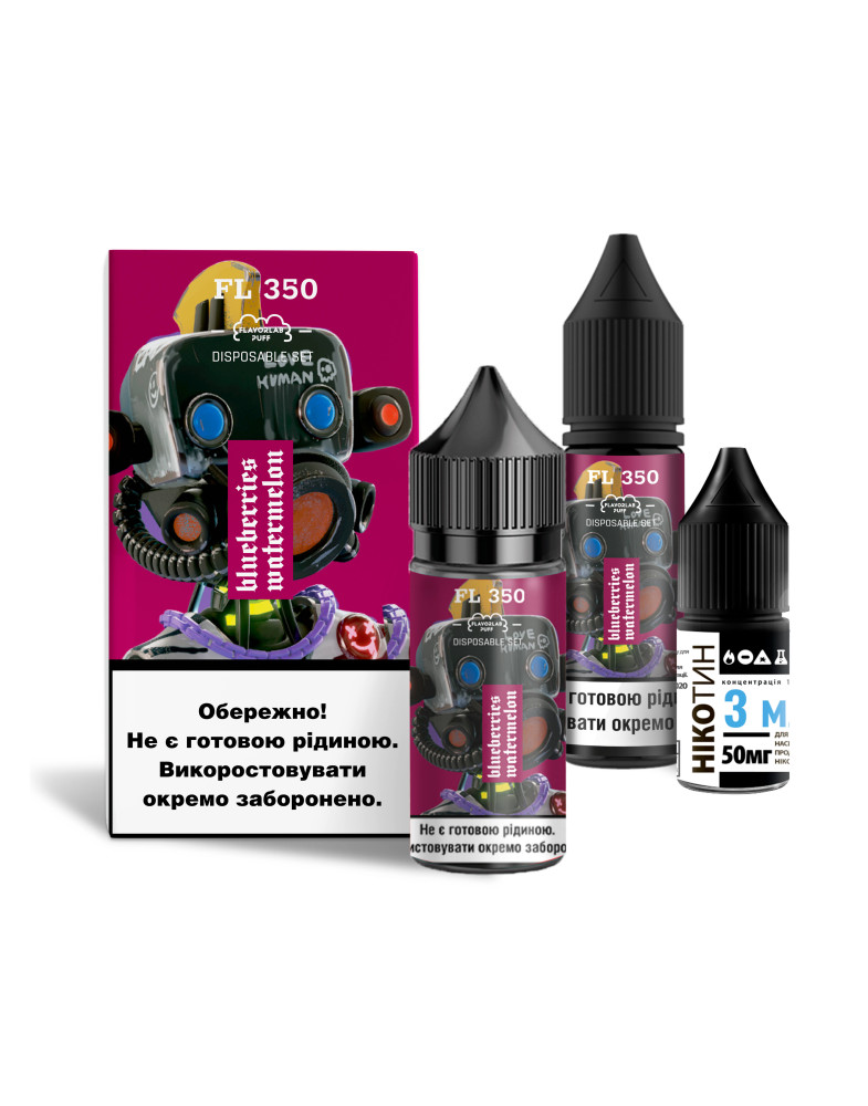 Набір Flavorlab FL 350 Blueberries Watermelon 30 мл — яскраве поєднання солодкої чорниці та соковитого кавуна. Насичена ягідна глибина чорниці гармонійно переплітається з легкою, освіжаючою солодкістю стиглого кавуна.