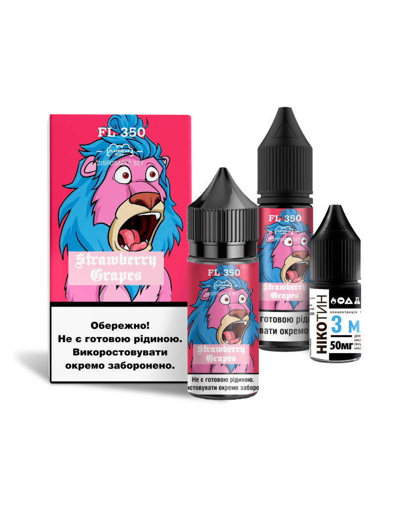 Набір Flavorlab FL 350 Strawberry Grapes 30 мл — яскраве поєднання солодкої полуниці та соковитого винограду. Смак насичений і гармонійний: м’яка ягідна солодкість плавно переходить у виразну виноградну свіжість із легкою фруктовою кислинкою.